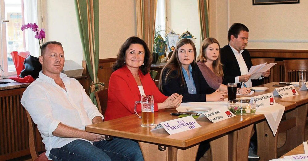 So fanden sich am Donnerstagabend Marco Altinger (FDP), Jutta Widmann (Freie Wähler), Aleksandra Freinecker (Linke), Marlene Schönberger (Grüne) und Florian Huber (SPD) im Gasthaus Postbräu ein. Ebenfalls angefragt war Dr. Petra Loibl (CSU). „Leider haben wir von ihr bis dato keine Rückmeldung bekommen“, so Hofmeister.