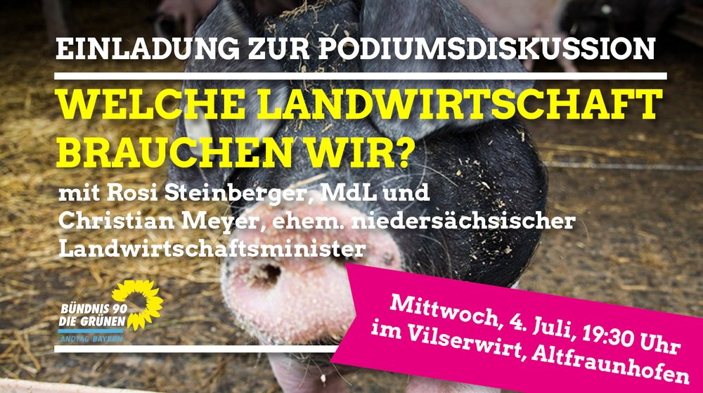 Als Referent wird Christian Meyer, ehemaliger Landwirtschaftsminister aus Niedersachsen aus seinen Erfahrungen als Minister berichten. Im Anschluss diskutiert die Landtagsabgeordnete der Grünen Rosi Steinberger mit Christian Meyer, Georg Sachsenhauser (BBV), Josef Schmid (AbL) und Rudolph Mirlach (BDM) über diese Fragen. Anregungen und Fragen aus dem Publikum sind ausdrücklich erwünscht.