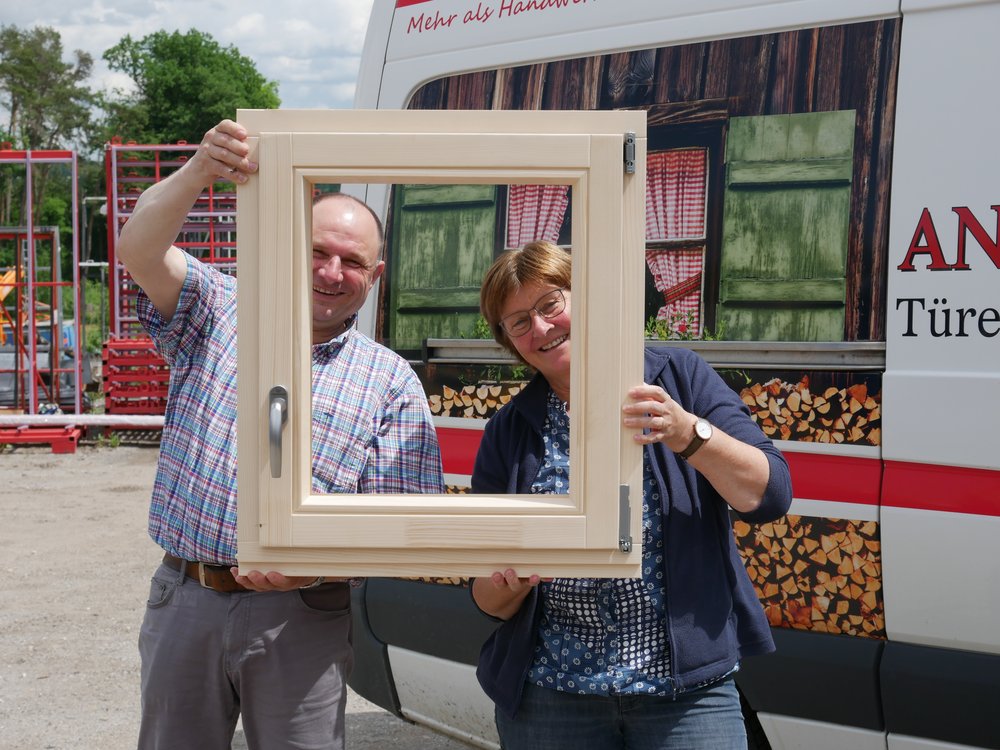Die Firma Angermaier gilt als Experte, was Denkmalschutz und traditionelle Holzarbeiten angeht. Im neuen Eingangsbereich des Freizeitparks soll ein Gebäude entstehen, das dringend schöne Holzfenster braucht. Auch hier musste Rosi Steinberger beim Ausmessen helfen und kam mit der Parkleitung Silke Holzner ins Gespräch.