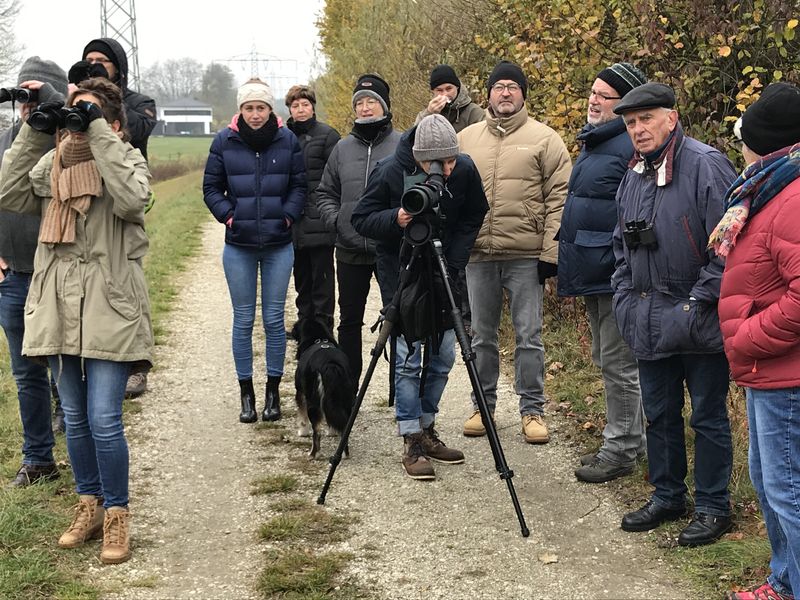 Letzten Sonntag, am 10.11.2019 veranstaltete der OV Eching Bündnis 90 / Die Grünen wieder eine interessante Vogelexkursion mit einer kleinen Wanderung am Echinger Stausee, Vogelfreistätte Mittlere Isar mit wiederum reger und sehr interessierter Beteiligung. Den Teilnehmern wurde die große Wichtigkeit des Vogelschutzgebietes, vor allem als zweitbedeutenster Rastplatz Bayerns in der Zeit der Mauser für ca. 15.000 Wasservögel erläutert. Mittlerweile ist der Wechsel des Federkleides abgeschlossen und so konnten bei kalten Herbstthemperaturen außer einer Vielzahl von Schwänen, diversen Enten- Gänse- und Reiherarten auch Kormorane und Gänsesäger im Prachtkleid beobachtet werden. Besonders schön war es einen Eisvogel sehr lange beim Fischfang zuschauen zu können.
