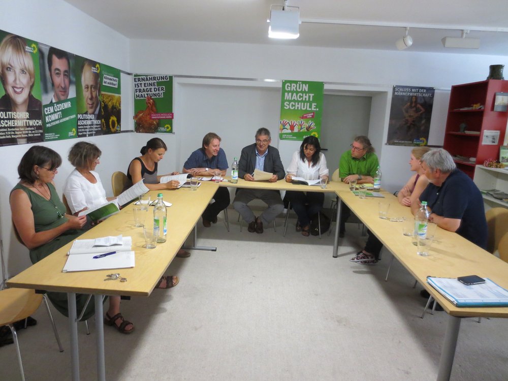 Zu dem Treffen, das sich der Ausstellungbesichtigung anschloss, waren neben dem grünen Bezirksrat Markus Scheuermann noch Vertreter von Landratsamt, Regierung und Professor Dr. Dannenbeck von der Hochschule Landshut geladen. Dannenbeck betreut dort das Lehrgebiet Integrations-/Inklusionspädagogik, sowie Soziologie der Behinderung.