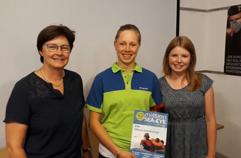 „Unser Einsatzgebiet war vor der libyschen Küste westlich von Tripolis, und unsere Aufgabe war die ärztliche Erstversorgung die Bereitstellung von Wasser und Schwimmwesten und die Benachrichtigung der italienischen Küstenwache, denn unser Schiff ‚Seefuchs‘ ist eigentlich zu klein für die Aufnahme Dutzender Flüchtlinge“ erzählte Fr. Barth, „aber weil die Schlauchboote beschädigt waren und zu sinken drohten mussten wir mehrmals Flüchtlinge an Bord nehmen“. Eindrücklich schilderte sie die Enge an Bord, die Notversorgung von Verletzungen, aber auch die große Dankbarkeit der Geretteten, die ihnen entgegenbracht wurde.