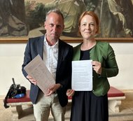 MdL Mia Goller übergibt Unterschriftenliste an den Umweltminister Thorsten Glauber (Freie Wähler)