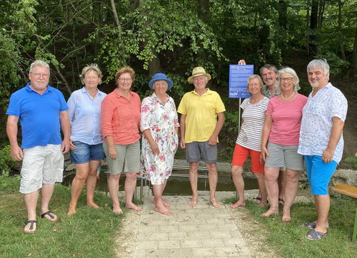 Die Kumhausener Kneipp-Anlage ist vor allem auf eine Initiative von Gemeinderat Sepp Fleck (Grüne) und Irmi Sigl zurückzuführen. Fleck berichtete humorvoll von den vielen Schritten, Gesprächen, und Ortsbesichtigungen und dankte der Verwaltung für die Geduld bei der Umsetzung. Aber es hat sich gelohnt: idyllisch und schattig fügt sich die Kneipp-Anlage am Fuß des Hügels in den Roßbach ein. Die Sitzsteine mit Sonnenplatz laden zum Verweilen und Trocknen der Füße ein, die nach dem Kneipp-Gang nur abgestreift werden sollen, damit es nachwirkt.