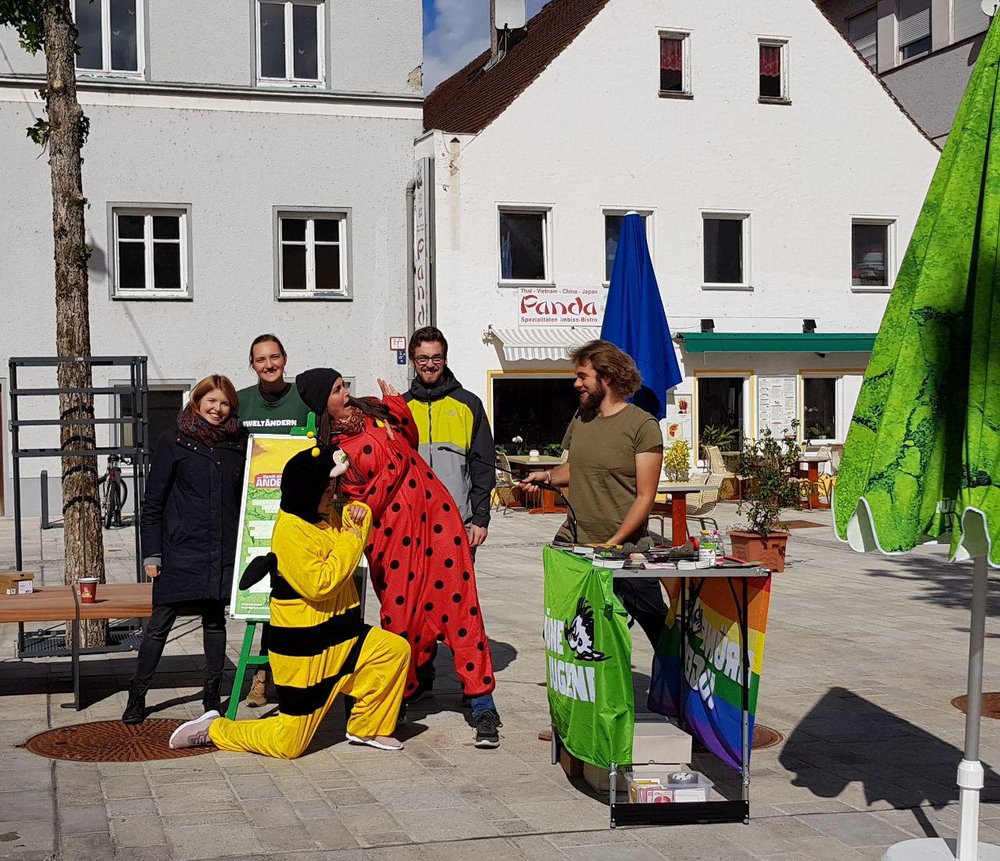 Im Rahmen der Landtagwahlkampagne „Damit sich was ändert!“ der GRÜNEN JUGEND Bayern fand am Montag am Marienplatz in Dingolfing eine Aktion zur bayerischen Umweltpolitik statt. Die Passantinnen und Passanten konnten sich anhand eines Quiz zum Thema Insektensterben über die Auswirkungen der Politik der CSU auf die Umwelt informieren.