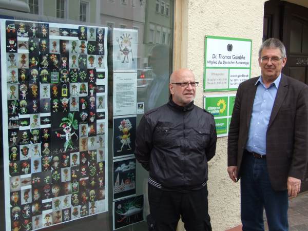 Der grüne Bundestagsabgeordnete Dr. Thomas Gambke stellt einen Teil seiner Schaufensterfläche in seinem Landshuter Büro Künstlern als Ausstellungsfläche zur Verfügung. Derzeit findet man ein großes Poster mit ganz besonderen Werken von Engelbert Fischer in dem Fenster in der Regierungsstraße.