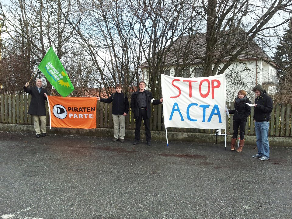 In den Reigen der internationalen Demonstrationen gegen das Handelsabkommen ACTA reihte sich auch der Ortsverband Bündnis 90 / Die Grünen Adlkofen ein. Für den Vormittag hatten die Aktiven zum Protest auf dem Dorfplatz aufgerufen.