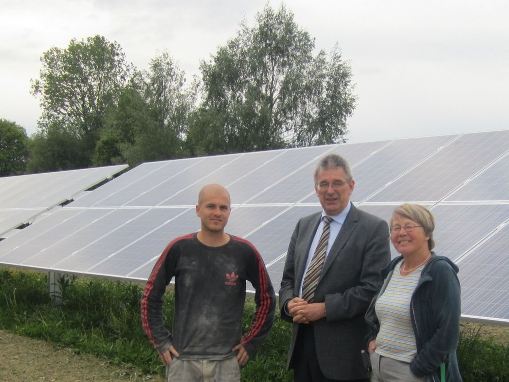 Der grüne Bundestagsabgeordnete Thomas Gambke besuchte zusammen mit Kreis- und Stadträtin Gisela Floegel die Freiflächen-Photovoltaikanlage, die Andreas Engl nach dem von ihm entwickelten "Weinberg-Prinzip" erbaute. "Das Besondere an dieser Anlage ist die Einbettung in die Natur. Hier wird nicht nur umweltfreundlich regenerative Energie erzeugt, sondern auch die Belange von Flora und Fauna umfassend berücksichtigt", erläutert der Abgeordnete. Diese Art der Freiflächen-Photovoltaikanlagen schaffe gleichzeitig Rückzugsgebiete für seltene Tierarten und Pflanzen. Der mit dem Bau verbundene Eingriff in die Natur werde dadurch mehr als kompensiert. Es sei bereits jetzt schon eine deutliche Aufwertung gegenüber der ursprünglichen Nutzung erkennbar. Nach ein paar Jahren werde das Solarfeld sogar als sogenanntes "Trittsteinbiotop" fungieren.