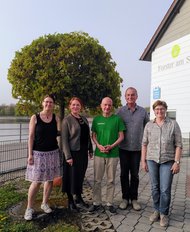 Auf dem Foto v.l.n.r.: Franziska Schmidt, Sprecherin Grüne Landkreis Landshut; Mia Goller, MdL; Dieter Wahl, Greenpeace; Hans Forstner, Sprecher Grüne Eching; Rosi Steinberger, Vorstand Grüne Landkreis Landshut.