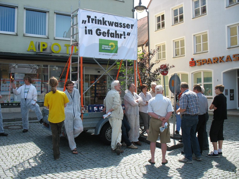 Die Aktion der Grünen zum Schutz des Trinkwassers am vergangenen Samstag in Geisenhausen und Altfraunhofen war ein voller Erfolg. Viele Bürgerinnen und Bürger waren durch die Presseinformation und durch ein vier Quadratmeter großes Transparent auf die Aktion aufmerksam geworden.